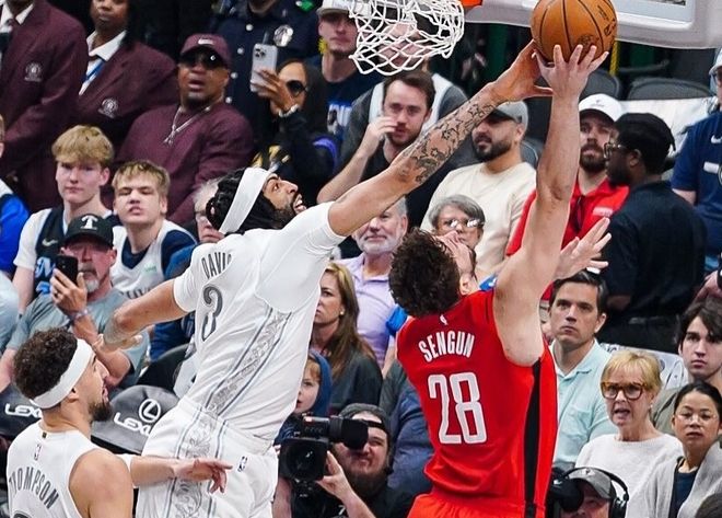 包括第三梯队的独行侠、马刺、灰熊等球队,大前提是保持健康状态。独行侠在上赛季送走东契奇后,联盟“补偿”性质的让他们抽到了状元签,弗拉格被寄予厚望,夏联弗拉格打了两场比赛,场均20.5分5篮板2.5助攻1.5抢断,没有明显短板,而且有不错的进攻发起能力。季前赛的两场比赛,弗拉格合计打了38分钟,拿到21分9篮板7助攻3抢断,个人综合实力确实很强。如果再算上欧文在赛季中段回归,独行侠纸面上有实力去冲击季后赛门票。但问题的关键在浓眉这里,湖人不让他打四号位,是有原因的。