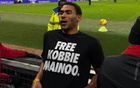 梅努的哥哥现身老特拉福德,衣服上写着“给科比-梅努自由”